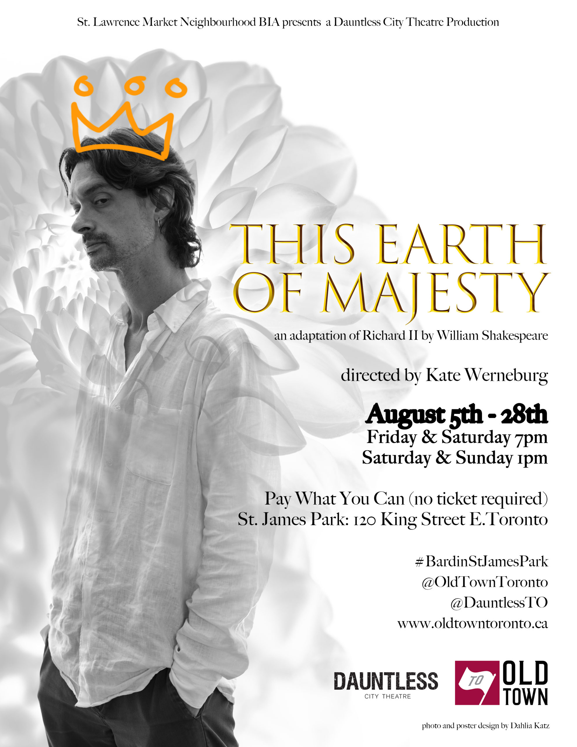 Presented by the St. Lawrence Market Neighbourhood BIA, Shakespeare’s Richard II will be performed on the Michael Comstock Pavilion this year in St. James Park. From August 5 to 28, Friday and Saturday evenings, Saturday and Sunday matinee.