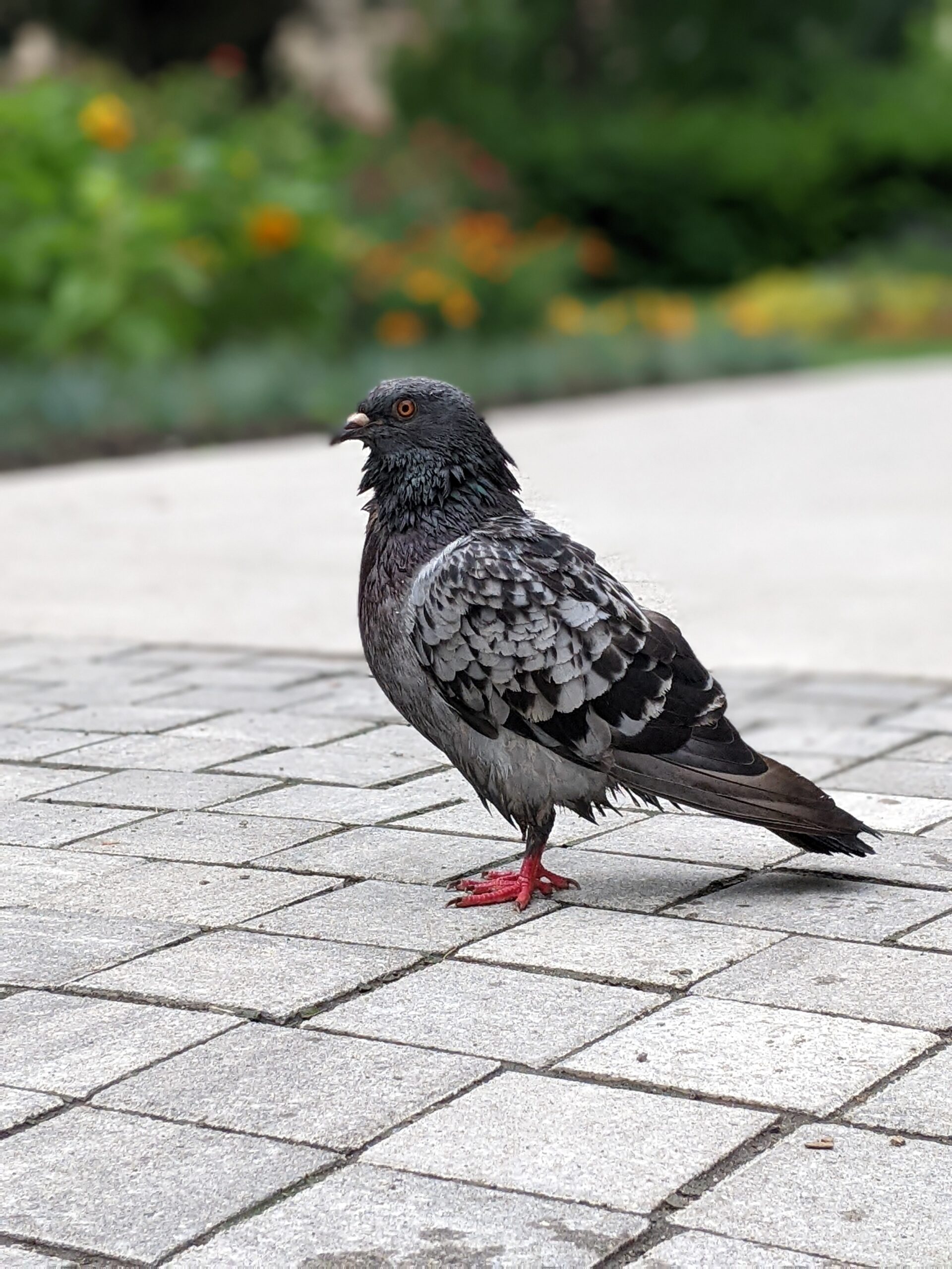 If the history of the bird doesn’t entice you, maybe some of their pretty amazing physical features might. Consider the pigeon’s iridescent neck feathers. There is no green or purple pigment in any of their feathers! Instead, the hue comes from a special layer of the feather that reflects light. Each neck feather is capable of shining both purple and green with the colour depending on the angle from which it is viewed.